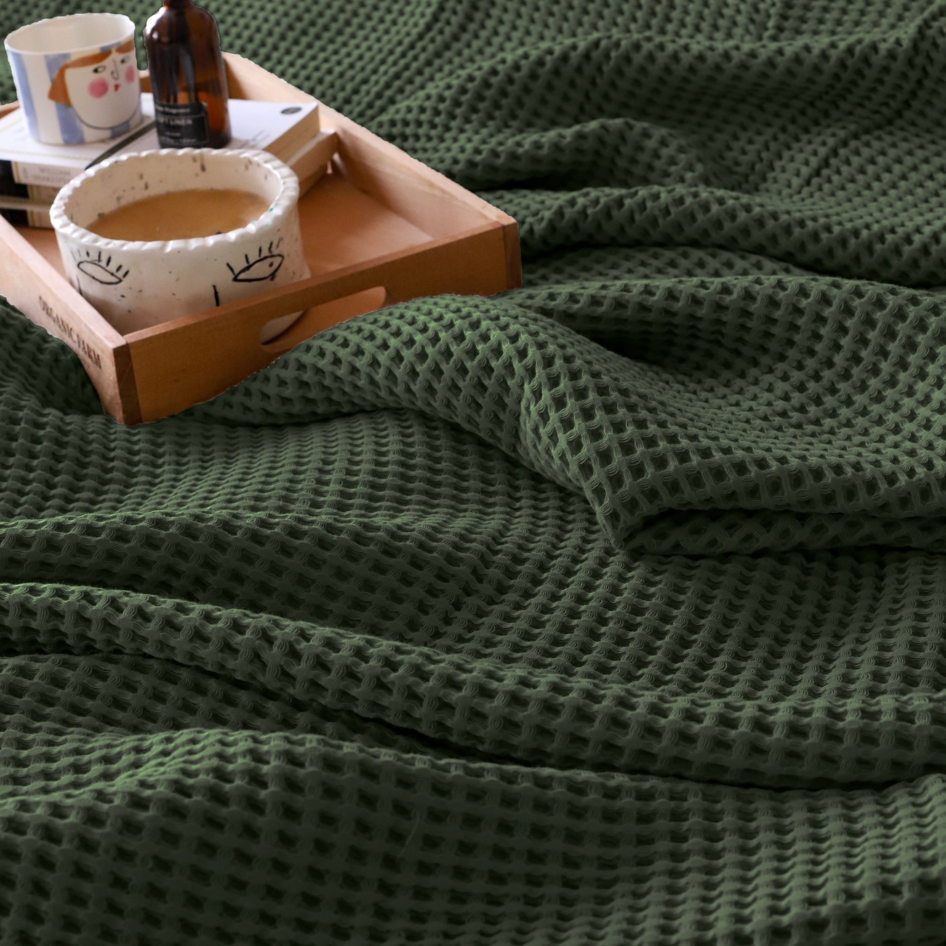 Dark Green Waffle Weave Blankets Bulk